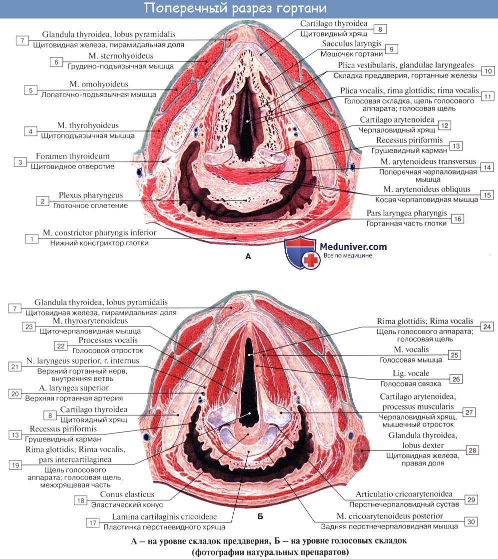 Полость гортани. Предверие гортани. Голосовая щель. Звукообразование в гортани