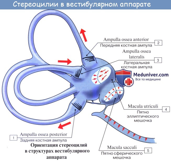 Поэтому различают передний, задний и латеральный перепончатые протоки, ductus semicircularis anterior, posterior et lateralis, с соответствующими ампулами: ampulla membranacea anterior, posterior et lateralis.